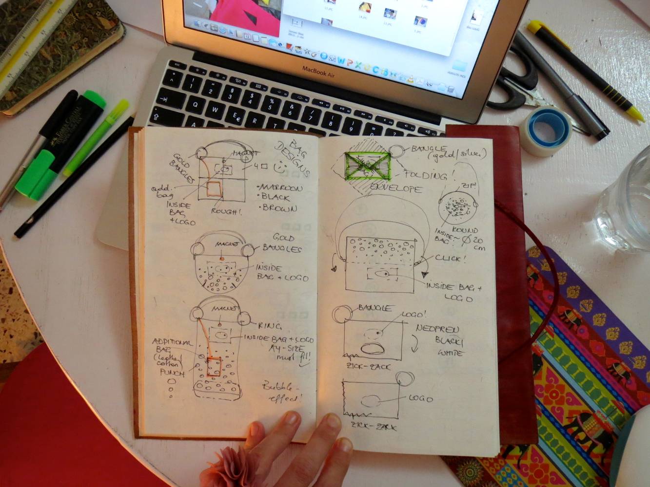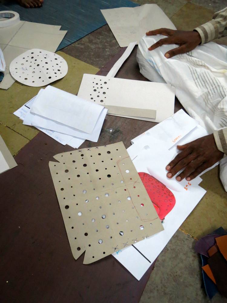 Zuerst wurden erste Prototypen aus Papier hergestellt, um die Eigenschaften der Taschen zu testen