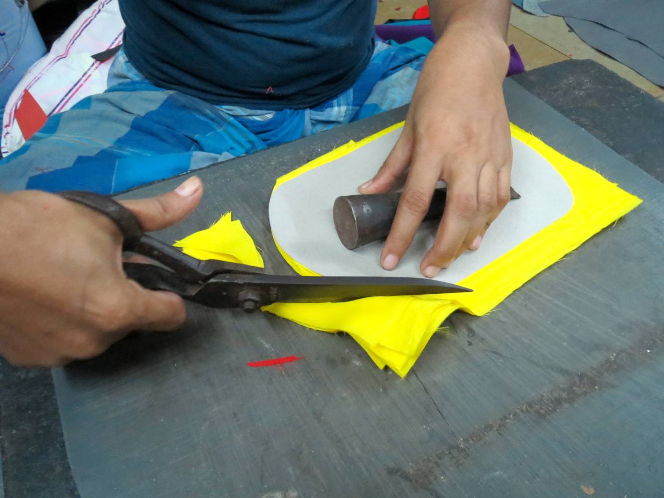 Lederhandwerker mit langjähriger Erfahrung arbeiten an den Taschen