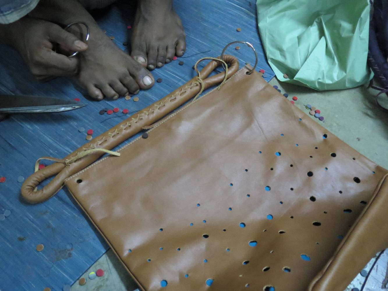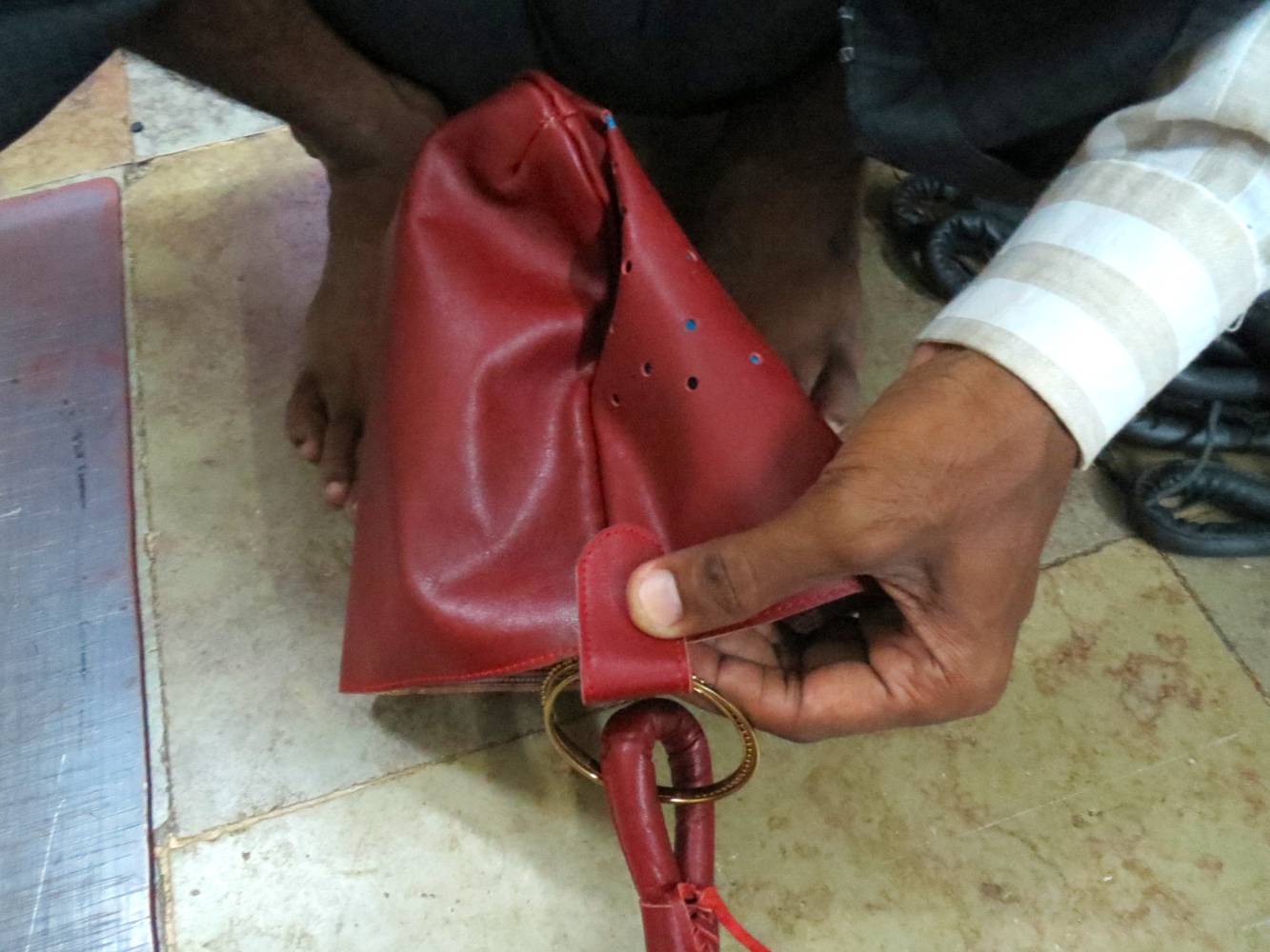 Anukruti-Taschen warten auf ihre Griffe, um ausgeführt zu werden